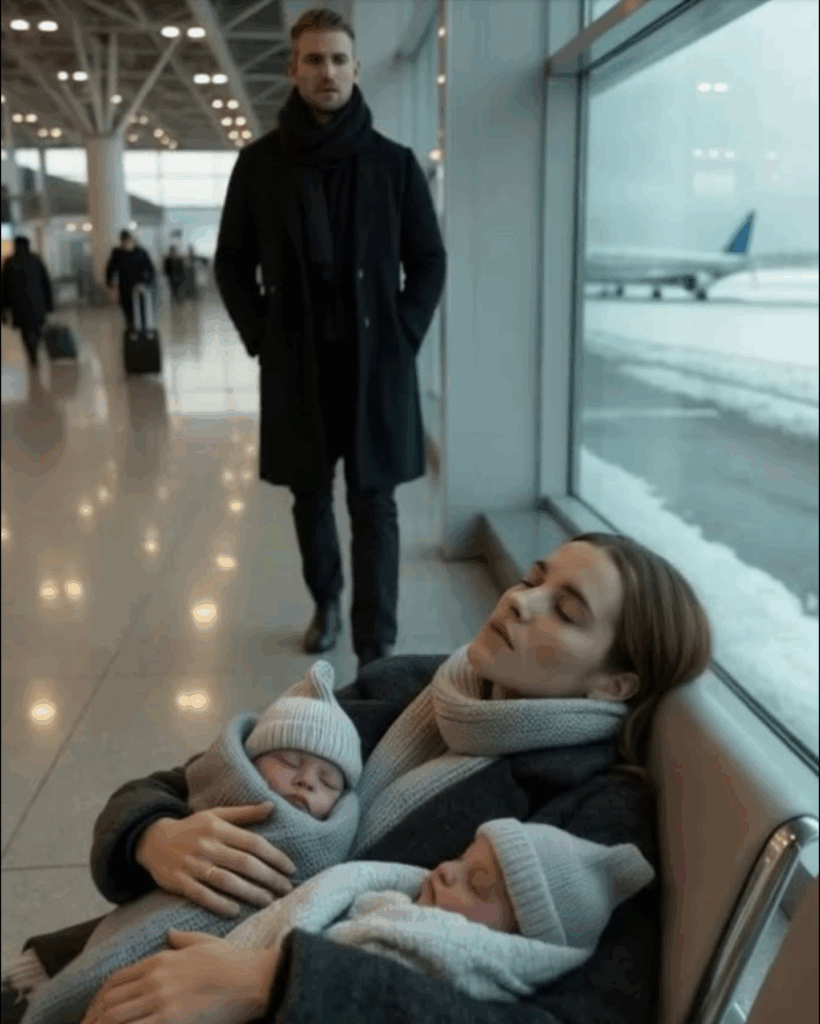 On the cold, glossy floor, in the middle of the hustle, sat a young woman. She held two infants tightly against her chest, as if her body alone could shield them from the world. Beside her lay a worn travel bag, serving as a makeshift pillow,