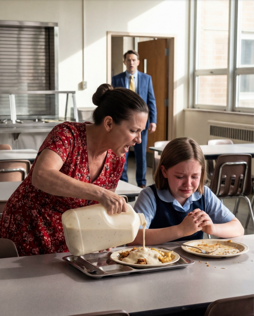 While the cafeteria buzzed with laughter and chatter, Emma was forced to sit at a table near the trash-return station. Vanessa would confiscate her lunch and replace it with leftovers.