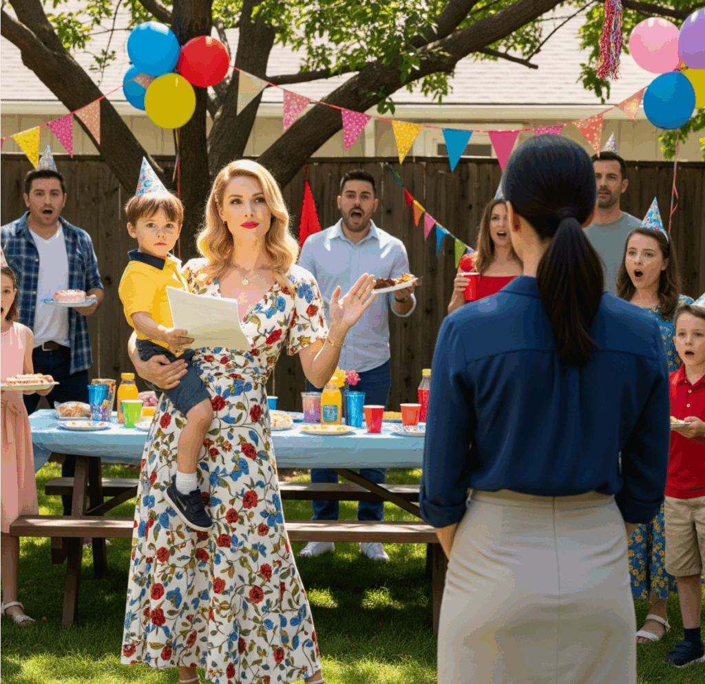 The backyard buzzed with children’s laughter and balloons. Conversations died when I approached; smiles felt forced. Then Cassandra appeared, Lucas on her hip, radiant and giddy. She tapped a spoon against a cup and dropped her bomb: Lucas was Adam’s son.