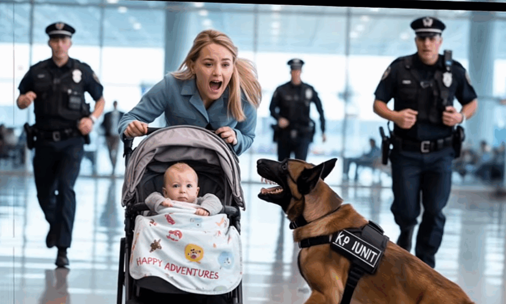 But Max wouldn’t relent. He sniffed furiously at the base of the stroller, barking louder now, eyes locked on a hidden compartment. Security closed in, surrounding the bewildered young mother and guiding her into a private screening room as whispers spread like wildfire across the terminal.