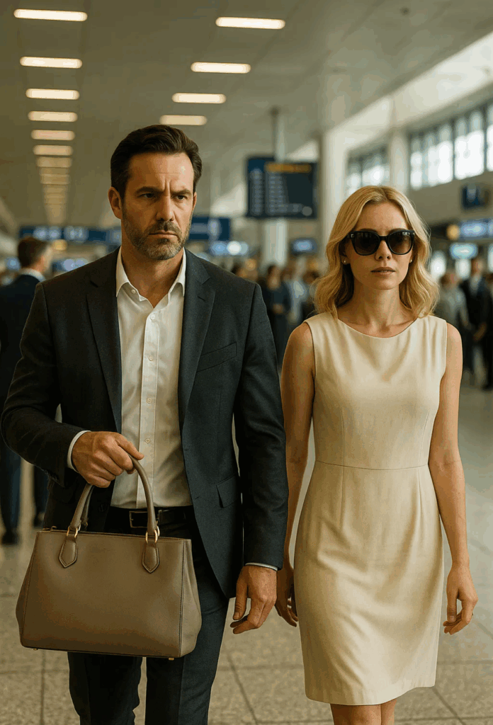 The terminal gleamed like polished glass. The marble underfoot returned each step as a soft, precise echo, and the overhead lights flattened faces into porcelain. Nadia glided beside him in a cream dress that caught the air with every stride—sunshine folded into silk.