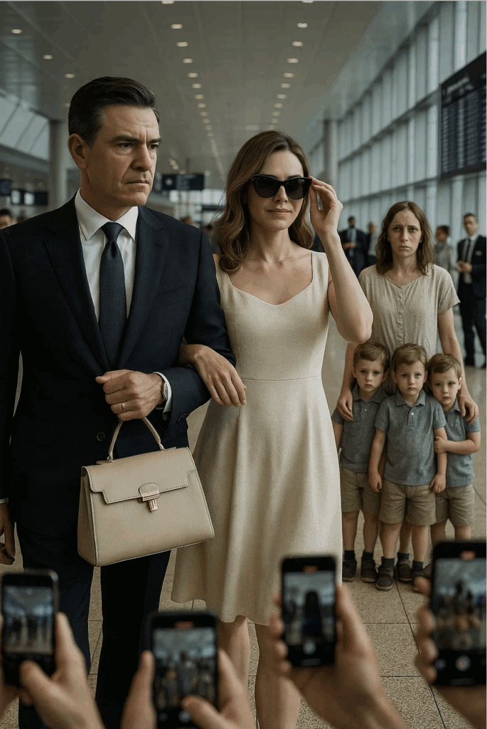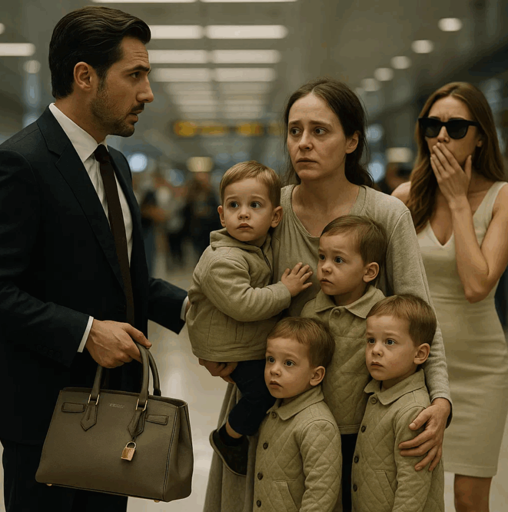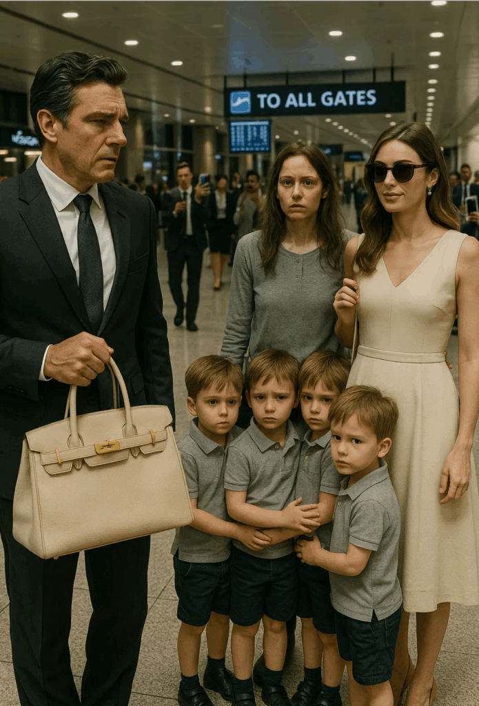 Around Evelyn clustered four small bodies—four boys, impossibly identical in the sharp geometry of early childhood. Each clung to the hem of her skirt with hands that had known too many absences. They were his. The recognition came not as news but as a kind of physical force that pried open his chest.