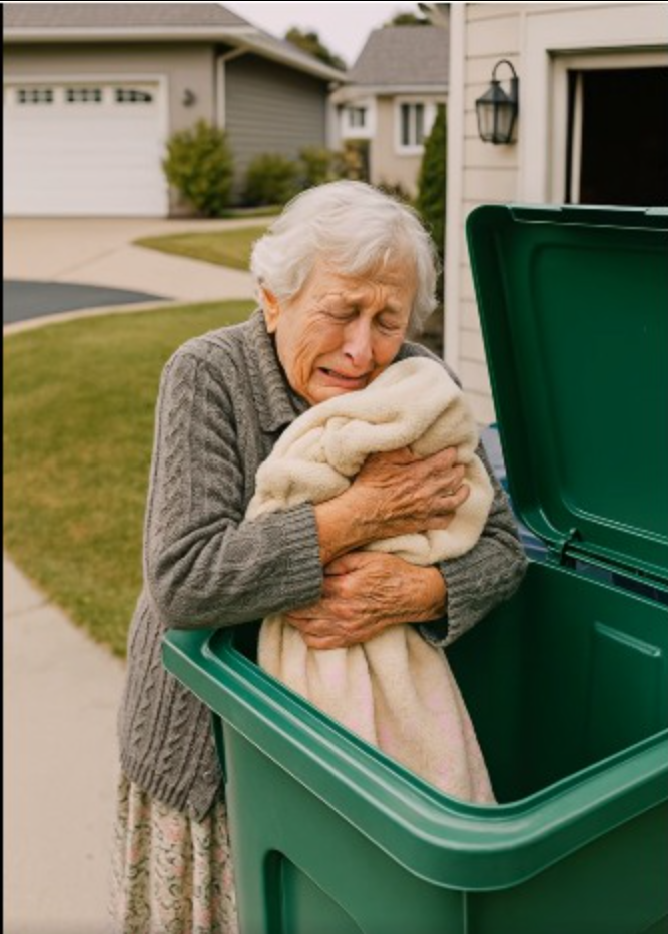 Before I could even react, I knew—she was going to throw it away.She didn’t do it carelessly. She shoved the blanket forcefully, with a certain anger, as if she wanted to get rid not just of the object, but of the memories it could summon. My heart raced. Without thinking, I ran out and pulled it from the trash.