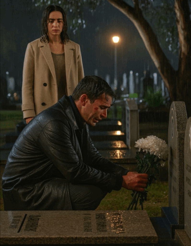 That evening, a fine drizzle fell. The cemetery was deserted, cloaked in silence. Only the wind rustled through the eucalyptus trees, whispering like restless spirits. In my hands I carried white chrysanthemums, a cloth, and candles. My fingers trembled as I laid the flowers down and whispered: