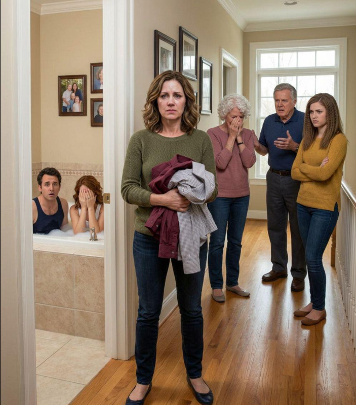 I didn’t cry.Something colder took over.Silently, I gathered every piece of clothing I could find—his jeans, her dress, socks, shoes, even the towels. Then, using the spare privacy key Ethan had installed himself, I locked the bathroom door from the outside.