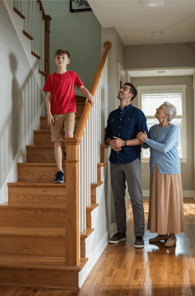 The Child’s Fear, Leo’s laughter had vanished. His world, once full of adventure, had become a maze of fear.He flinched at sudden noises. He refused to go near the stairs.But the worst signs came when his grandmother or uncle entered the room.