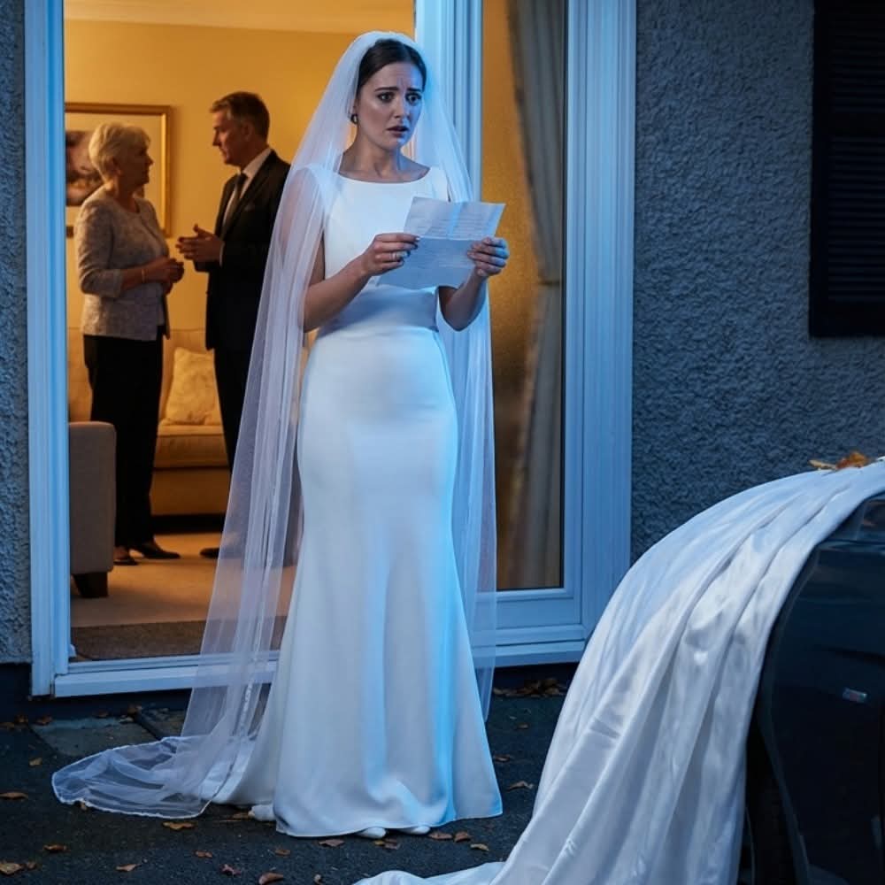 My dress was carefully hung on the back seat, as if guarding a secret. My white shoes rested in their box. In my bag was a handwritten letter—personal, fragile, sincere—that I wanted to give him before midnight. One last gesture of love before becoming his wife.