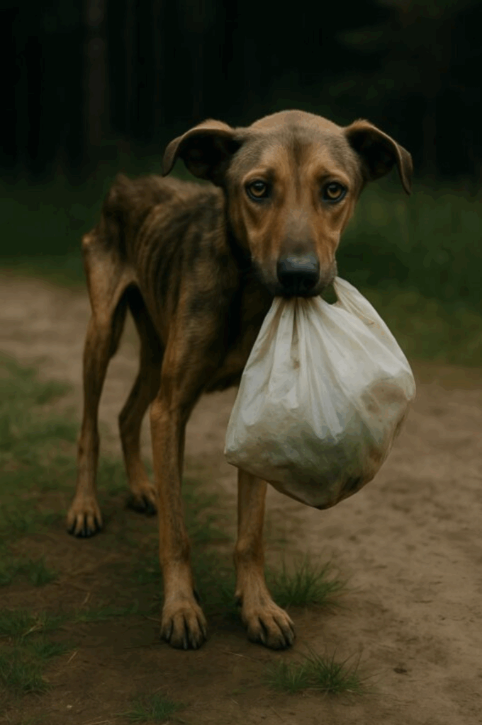 A Gaunt Dog Emerged from the Woods Carrying a Plastic Bag â When People Looked Inside, They Were Horrified đ¨